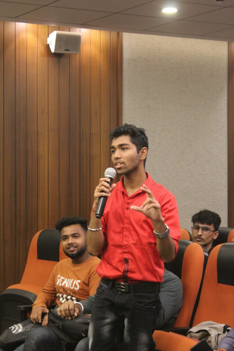 There were three dedicated students Sk.Alham Zain stated about the  brilliant cinematography and how Christopher Nolan tried to showcase the movie. Gourav Choudhury discussed about the movie’s timeline and the science within that movie. Sinchan Dasgupta spoke about a particular scene in the movie where the music that been used was very significant to the movie’s context. He basically spoke about how the music was used to intensify the environment. After the discussion Sourodipto Roy spoke about how the science in the movie differs from the reality of physics and hence not authentic.