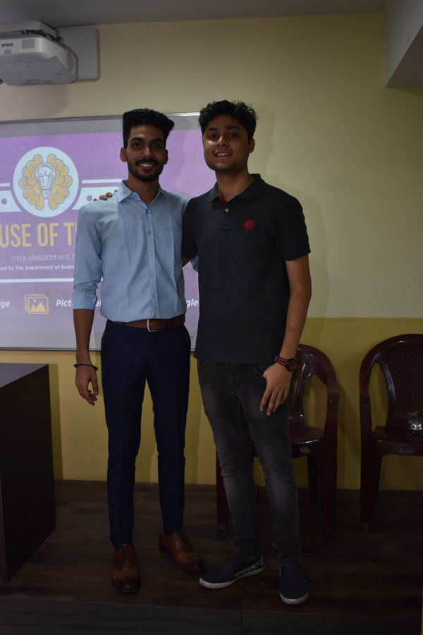 The first position was awarded to Devesh Sharma (Semester 5) and Jaya Pandey (Semester 3). The second position was awarded to Pratham Kothari (Semester 3) and Ananya Sarkar (Semester 3). Aayush Agarwal (Semester 3) and Syed Inshal Ali (Semester 3) were the second runner – ups.