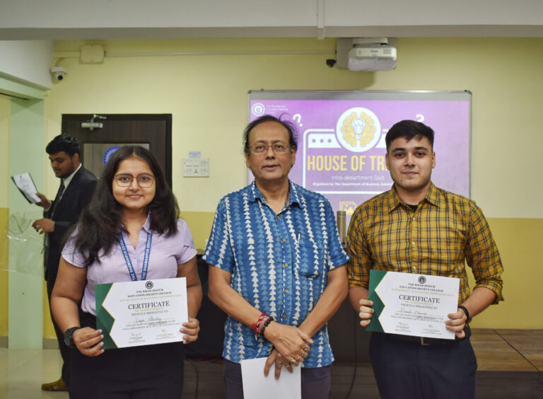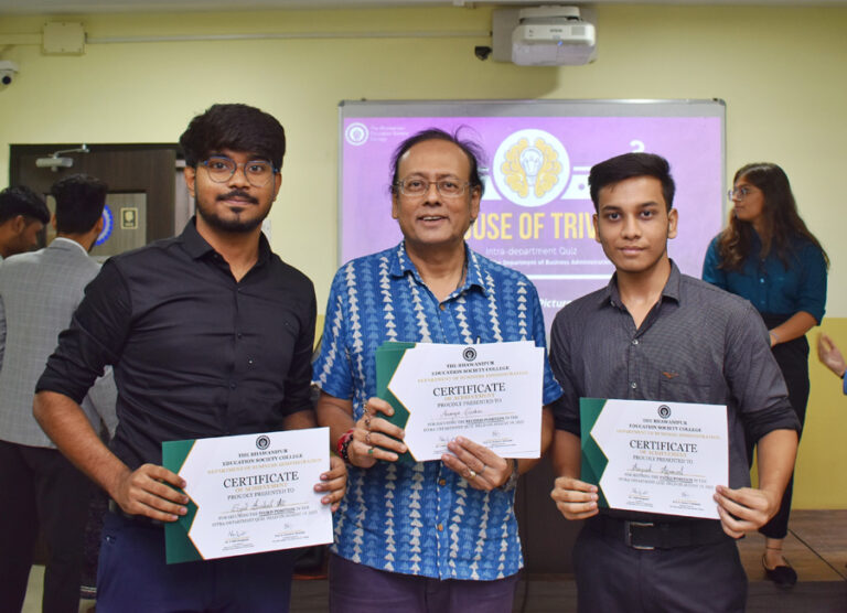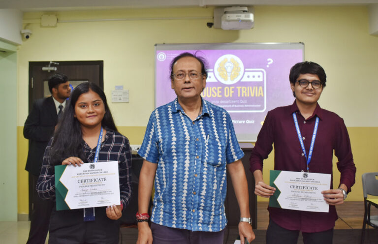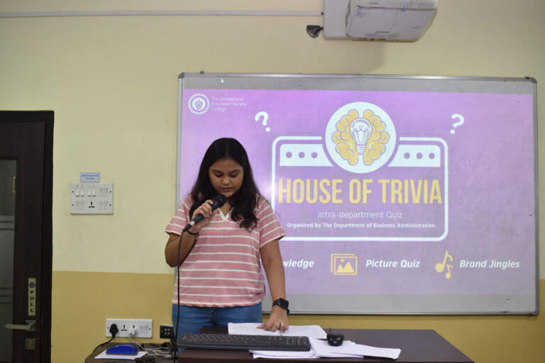 The ‘House of Trivia’ organized by the BBA Department of The Bhawanipur Education Society College was a quiz designed to test knowledge and increase excitement among participants. It aimed to encourage healthy competition by putting their mastery of various domains to the test. The goal was to expose them to the business world early on and prepare them for it. The event was held on August 18th and 19th, 2023 in Room 504 of the BBA Campus at 9, Elgin Road.