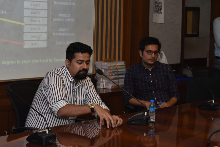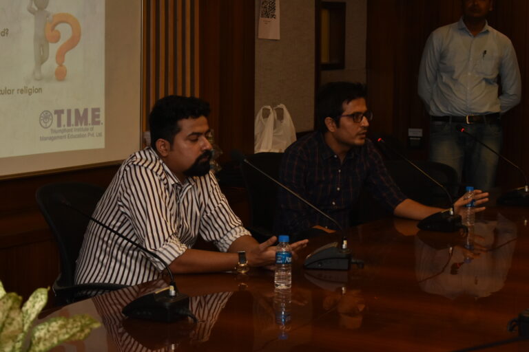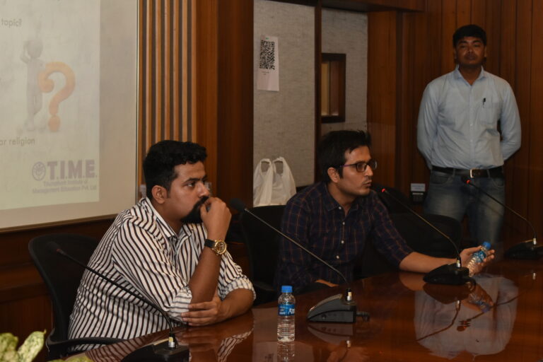 On 18th May 2023, The Bhawanipur Education Society College hosted a seminar on ‘How to Crack GD for MBA.’ at the Society hall of the college. The guest speakers for the event were Mr.Inder Chopra who has completed his PGDM from XLRI and Mr.Siddharth Malik, a graduate of IIT BHU and has a PGDM from IIM Calcutta. Both Mr. Chopra and Mr.Malik represented TIME Institute along with Ms.Prachi Mahajan.