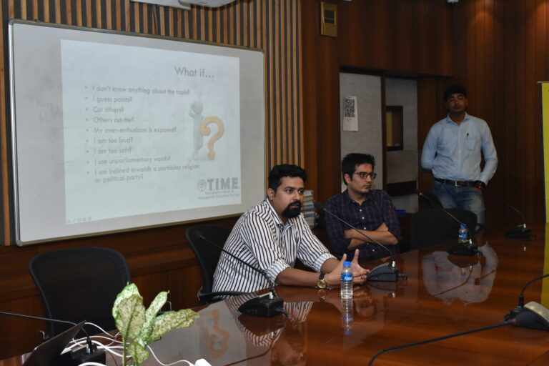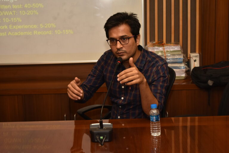 Additionally, they emphasized the importance of thorough preparation, which includes gaining knowledge on a wide range of topics, staying updated with current affairs, and honing one’s communication and presentation skills. Communication skills were highlighted as a key factor assessed during GDs. The speakers stressed the significance of effective verbal and non-verbal communication, including clarity of speech, articulation of ideas, and body language. They explained that candidates who can convey their thoughts clearly, engage in meaningful discussions, and actively participate in group dynamics are more likely to succeed in the evaluation process. Furthermore, they highlighted the significance of active listening and respecting others’ point of views during the discussion, as this demonstrates empathy and open-mindedness, which are highly valued skills in managers.