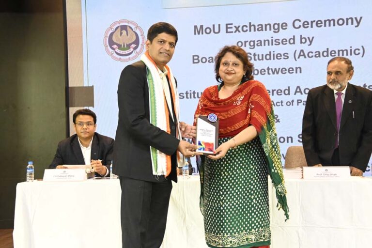Towards the end, on behalf of the Board of Academic Studies (ICAI) Prof. Dilip Shah, Prof. Minakshi Chaturvedi,Prof. Mohit Shaw, Prof. Vivek Patwari were honored by the institute.