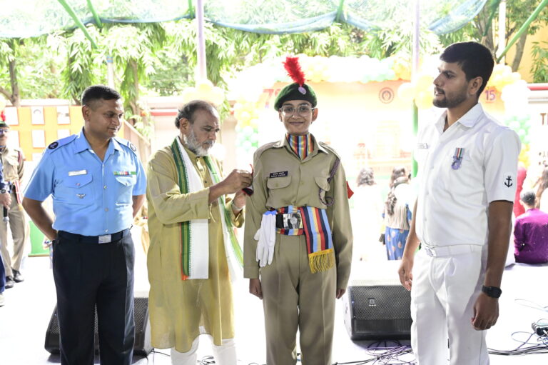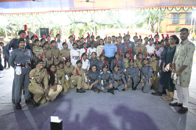 Towards the end, the Rector and Dean of Student Affairs Prof. Dilip Shah announced the book launch of the Students’ Conference, 2024 and the authors were handed over the books by the college dignitaries. Following this, Prof. Shah announced the winners of the Faculty Intra-College Sports Tournaments and felicitated them with the trophies and medals. He also applauded Khushi Lakra, International Chess Boxing Player, and Mahi Bosmia, a National Darts Player as they will receive the Khel Ratna Award on 23rd August, 2024. Aditya Raj, mentor of the NCC Unit of the college proceeded with the Rank Ceremony where the NCC Cadets were awarded for their excellence and dedication. A felicitation of members of the teaching and non-teaching faculty for outstanding performance in indoor games was also carried out; with Prof. Saspo Chakraborty bagging maximum prizes. Lastly, abiding by the college customs, the Best Dressed Male and Female from the faculty and the student category were announced and felicitated. The auspicious ceremony ended at 11:00 A.M. with the closing remarks by Prof. Dilip Shah where he thanked everyone for being a witness to this celebration. Jai Hind! Vande Mataram! Reporter– Moubani Maity Photographer– Agrag Ghosh, Sanika Shaw, Nischay Alokit Lakra