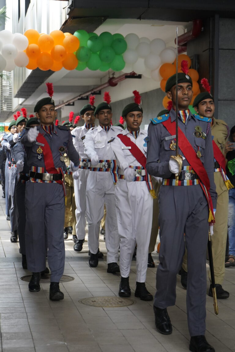 It was 9:30 A.M. sharp when the auspicious occasion proceeded on the College Turf which kicked off with the welcome speech and then the Flag Hoisting Ceremony on the Turf while the National Anthem sung in synchrony, followed by March Past by the Bhawanipur Gujarati Education Society School and Bhawanipur Education Society College NCC Unit which is divided into three wings of Army, Air and Navy. There was a powerful speech delivered by President, Sri Rajnikant Dani. The first performance of the day was a powerfully built role-play of Freedom Fighter, Sucheta Kriplani to pay her tribute and was exhibited by a member of The Enact Collective of BESC College. The play left no stone unturned to give goosebumps to the audience through its story showing the bravery that Sucheta Kriplani had while demanding an Independent India from the Britishers.