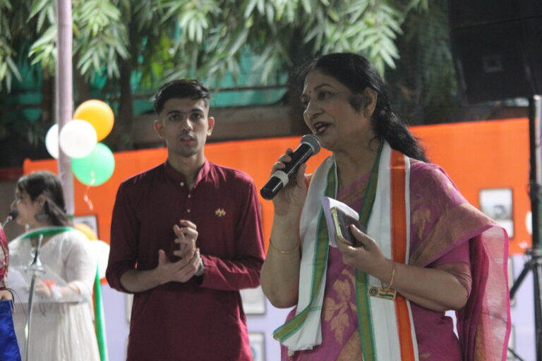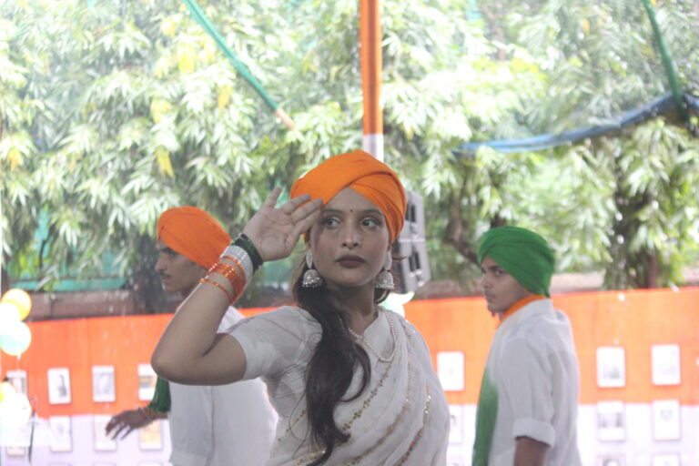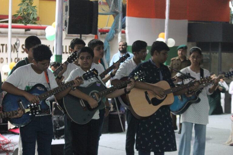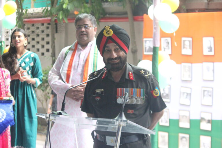 As the march came to an end, Shri Miraj D. Shah addressed the gathering. In his speech, he highlighted how today’s youth are often trapped in the digital world, which, he pointed out, is destroying their ability to function naturally. He described this dependence as a deviation from the path of growth, and concluded with a powerful message that unless there is reform and freedom from “digital slavery,” true independence cannot be achieved. This was followed by an address by the chief guest, ADG West Bengal & Sikkim Directorate, Major General Chahal, who began by thanking the dignitaries for allowing him to be a part of the celebration. He urged everyone to remember the sacrifices of those who fought for freedom, stating, “Freedom is not free.” Drawing an analogy, he explained that the struggle for independence could be understood by observing a caged bird—symbolic of how the British Raj kept India confined. After the patriotic speeches, the students of the Enact Collective presented a powerful play on the “Bidrohi Kobi” (Rebel Poet), Kazi Nazrul Islam. The performance beautifully portrayed his ideologies, showing how, when nothing else worked, he transformed his pen into a sword. His unyielding rebellion ignited flames in the hearts of Indians to rise against oppression. This was followed by a captivating series of performances by ICSE students, including two instrumental renditions of “Sochna Kya” and “Bharat Mata,” composed by the school staff. A dance and musical performance themed Operation Sindoor, with students dressed in military uniforms, further added to the patriotic spirit. The ISC students then took the stage with a fashion show, showcasing traditional white attire and turbans from across India, walking with poise and capturing the audience’s attention.