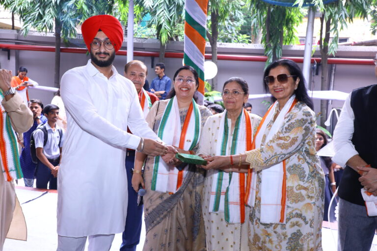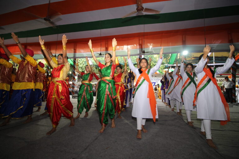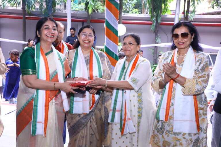 Gathering at the college Turf at 9:00 am participants from The Bhawanipur Gujarati Education Society School (ICSE and ISC) and The BESC college came together to perform songs and dance, celebrating our Independence. Beginning with the opening speech, several dignitaries from the management were welcomed with a ‘tricoloured uttariyo’. After this, all the dignitaries present, unfurled the national flag which was followed by a melodious national anthem sung in synchrony. A march past hosted by the ICSE school students and cadets from our college’s NCC wing walked past the Turf, in honour of the National flag. The march past was followed by a speech from the President, Sri Rajnikant Dani.
