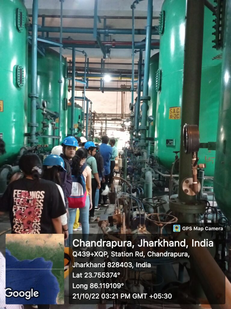 An industrial visit was organized by the Department of Chemistry on 21.10.2022 and 22.10.2022 at the Chandrapura Thermal Power Station (presently it has two units with a total installed capacity of 500 MW (2×250 MW) located at Chandrapura, Bokaro.