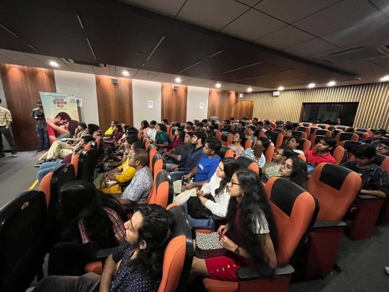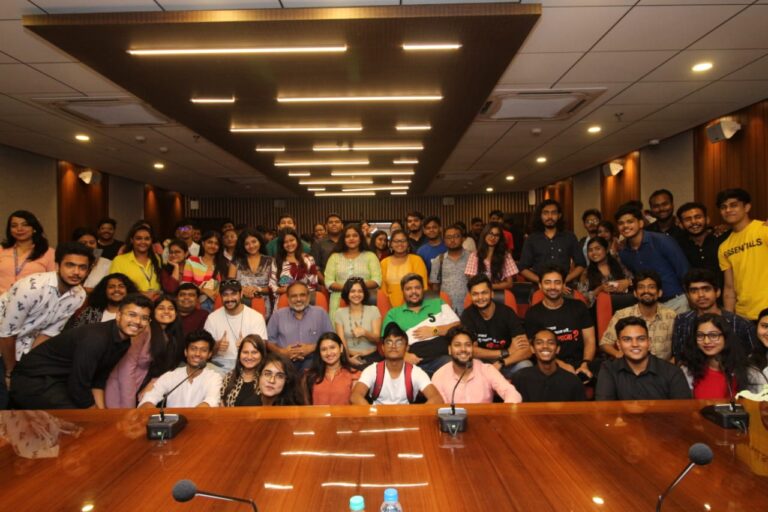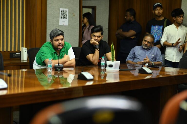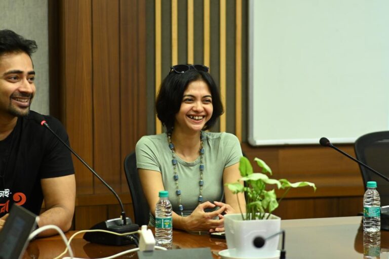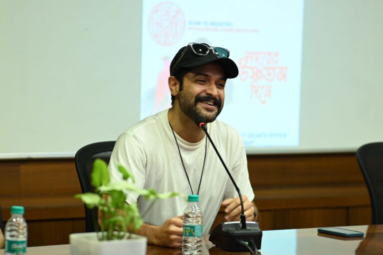 The event commenced with the screening of the movie’s trailer and songs, which was followed by a flurry of questions from the students in attendance. The Director discussed the techniques of filmmaking and how to grow into a professional in the Bengali Cinema Industry (Tollywood). They proclaimed their belief that ‘Cinema is magic’ and that the language barrier would not stop the audience from relating to the theme of the movie as the audience will see themselves in those characters. The actors inspired the students to comprehend their concepts by talking about their experiences working together and how they began their journey in this field.