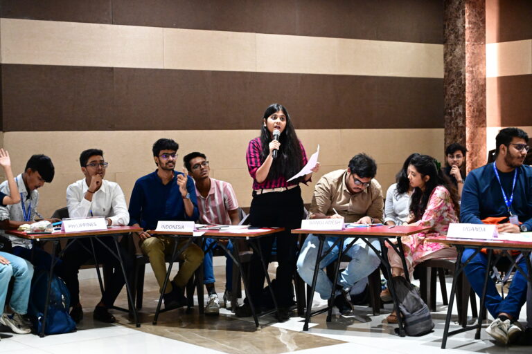 The day proceeded with participants acquiring a country for them to represent during the barter and a list of commodities that they were expected to trade with, the commodities were real-world resources like Coffee, Jute, or Dairy which made this experience realistic and stimulating for the students. Before the rounds began, the volunteers briefed the participants on trading systems, procedures, negotiation, and rules of the competition. This process proved to be desirable since it provided clarity to the participants and helped them strategize effectively. The event consisted of nine rounds with each round associated with a shock in the unpredictable market that affected trade conditions, for instance, the price of Soybean decreased by ten percent in the first round. These shocks paved the way for the trading process of each country, who were expected to trade within the limit of ten lakh rupees, which also reflected the financial constraints that countries have to face during real-world trades. Throughout the trade, participants were also expected to give reasonable justifications for each decision that they made and were also cross-questioned by the judge to ensure accuracy in the scoring process.