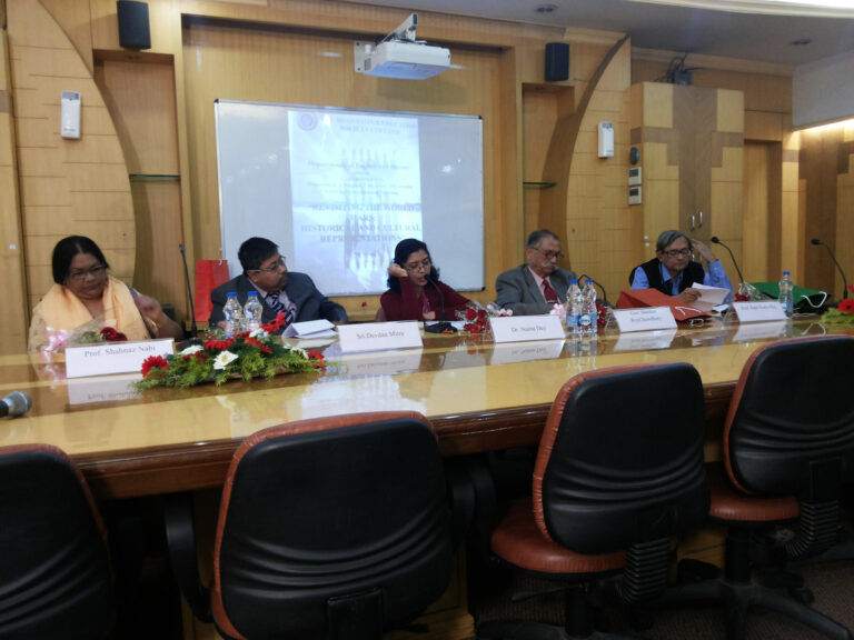 On December 17, the second day of the Seminar, Dr. Kaushik Roy of the Department of History, Jadavpur University presented a detailed account of Non Combatant autobiographies of Indians in the First and Second World Wars. The session was chaired by Prof. Ranjit Sen of the University of Calcutta. This was followed by an interdisciplinary panel discussion at 11-30 that included General Shankar Roy Chowdhury, Indian Army (Retd.), Professor Rajat Kanta Ray, Professor Emeritus, Department of History, Presidency University, Sri Devdan Mitra, Resident Editor, The Telegraph and Professor Shahnaz Nabi, Department of Urdu, University of Calcutta. The discussions ranged from diplomatic war strategies to intimate accounts of the Indian Soldier’s experience in the Second World War, the civilians’ responses to war and the question of media and the propaganda war. In the post lunch session that consisted of paper presentations by scholars and professors of reputed institutions the audience were introduced to diverse perspectives on the war including interdisciplinary approaches to war, role of the media, representation of war in literature, art, films and popular media. The valedictory session was conducted by Dr. Suchandra Chakravarty, Vice Principal of the Bhawanipur Education Society College, followed by the distribution of certificates.