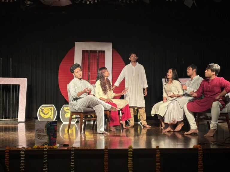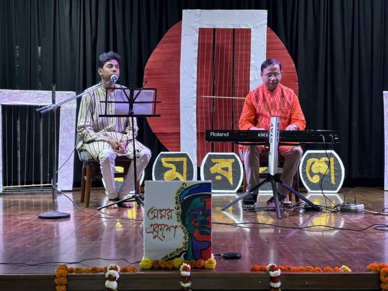 The purpose of the event was mainly to uphold the significance of the historical struggle behind the famous ‘Bhasha Andolan’ and also to inculcate within us a sense of reverence towards our mother tongue which has enriched our soul. Sri Pralipta Ghosh from Shantiniketan and Sri Durojit Das added more beauty to the day’s event. With an wonderful voice Pralipta Ghosh presented a bouquet of Classical Rabindrasangeet, Nazrul geeti and the most renowned song ‘Ami Banglay gran Gai’. The day drew to an end with a drama – by the students of the college drama troupe –Antarjaal.