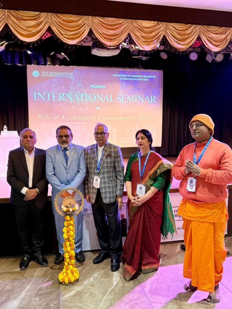 The Department of Commerce (Morning), in association with the Internal Quality Assurance Cell (IQAC), organised an International Seminar on “Role of Academia in Contemporary Times” with the objective of deliberating upon the evolving responsibilities of academic institutions in a rapidly transforming global environment. The seminar brought together academicians, industry leaders, and thought leaders to engage in meaningful discussions on education, technology, culture, and institutional collaboration.