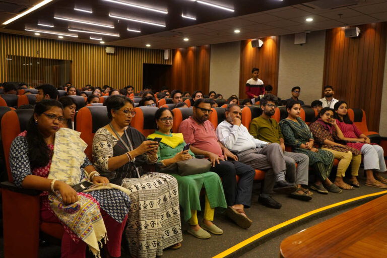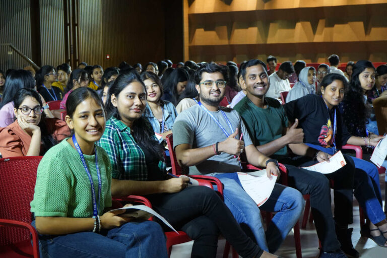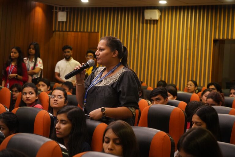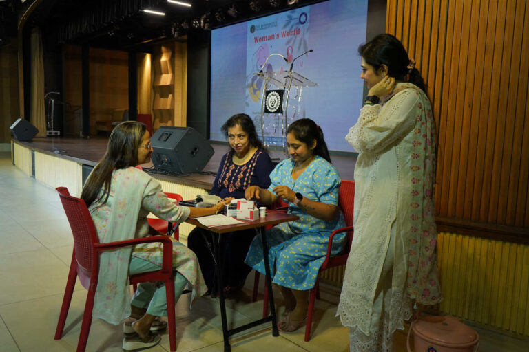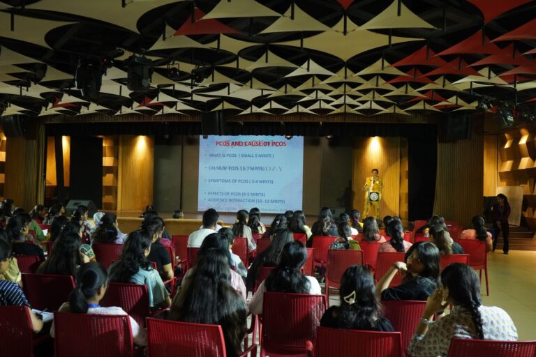 The first session on hair and skin care with a free health checkup camp, was organized on March 7th in the Concept Hall, in collaboration with Epta Clinic. The session began at 10:30 am with students from all disciplines patiently waiting to learn methods to battle problems like acne, irregular menstruation, hair fall issues, etc. The session began with an introductory note by Prof. Dilip Shah, Rector & Dean of Student Affairs who thanked Ms. Chandrayee Bagchi, a women entrepreneur behind Epta Clinic. The guest speaker for the day was Prof. (Dr.) Biswapati Mukherjee, Consultant Obstetrician and gynecological endoscopic surgeon who was introduced by Ms. Bagchi. Prof. Mukherjee talked about how dermatological problems like skin acne and hives commonly arise in women due to hormonal imbalances and improper diet.