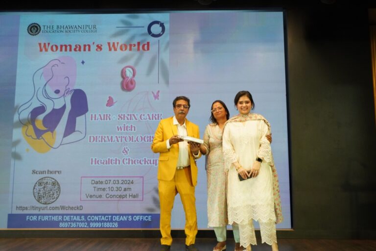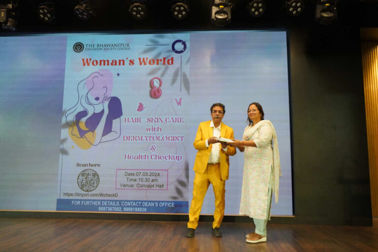 On the occasion of International Women’s Day, the college celebrated the incredible power of women, who don various hats in their daily lives, during which one primary concern is their health. To ensure the well-being of the multitasking women at home & work, the BESC came up with a two-day session on women’s well-being and care, on the 7th and 8th of March to sensitize students, teaching & non-teaching staff about the Woman’s World.