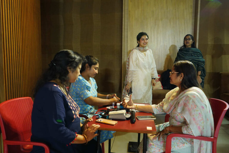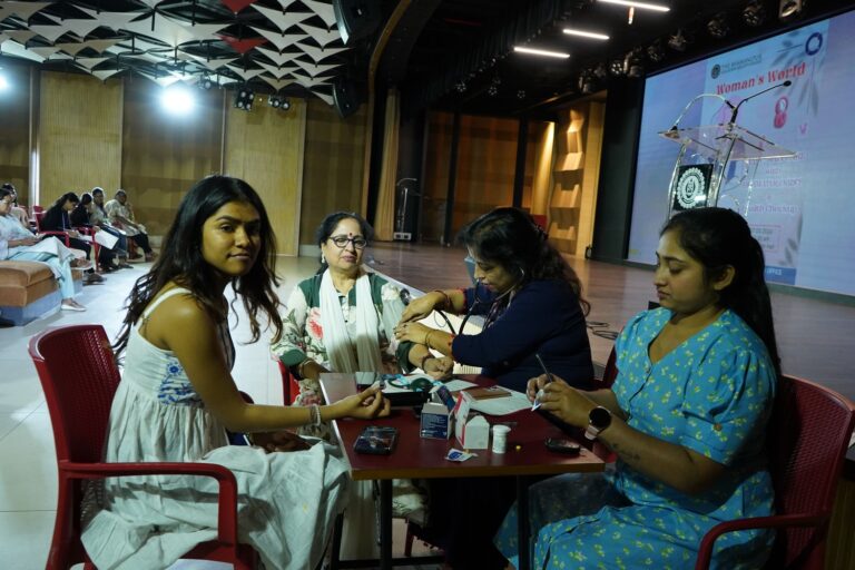 When Dr. Mukherjee took center stage, he displayed a detailed PowerPoint presentation on skincare and haircare upon which the audience later asked various questions related to their issues. During the session, forms were distributed among the audience to fill out their common issues and then each member of the audience lined up to undergo their blood sample for random sugar test and weight, oxygen, & pulse rate. After that, each one analyzed was given an overview of their health status & the overall analysis of their well-being. The session ended with each participant taking out refreshments & looking forward to the talk the following day.