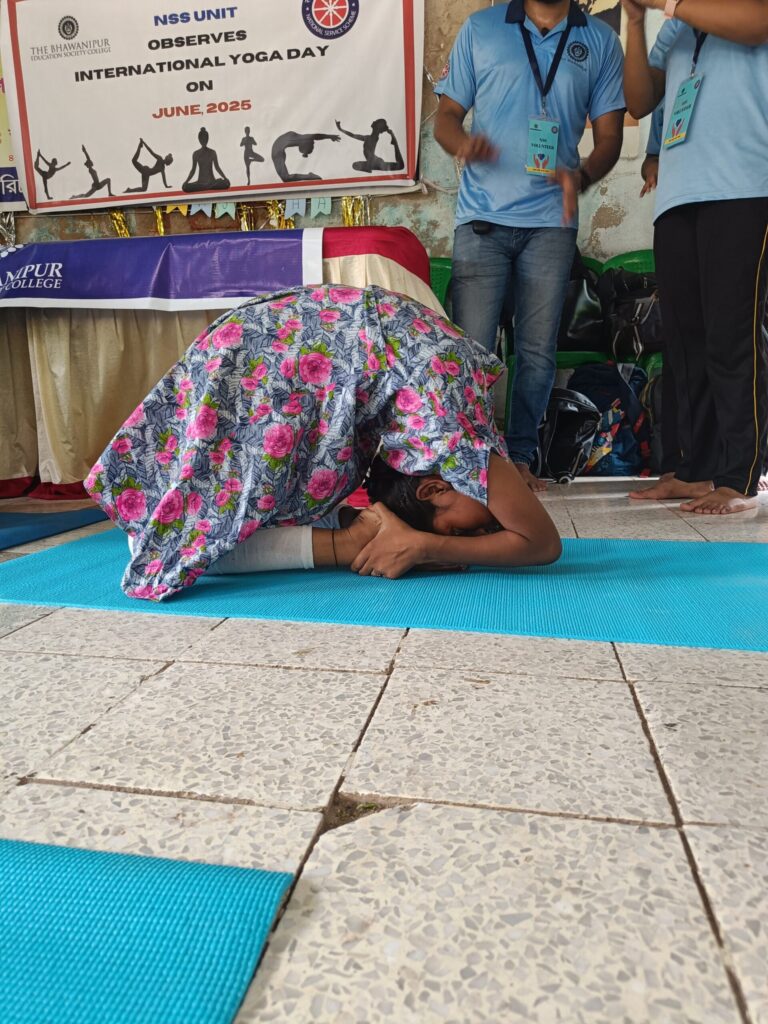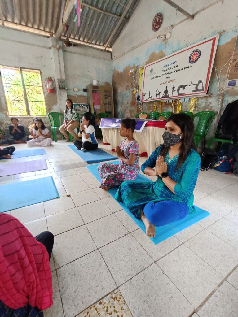 Brief description of the event: The celebration began with the arrival of the yoga instructors and volunteers at Save the Children, Thakurpukur, where children were introduced to yoga in a fun and structured format. Participants practiced various yoga asanas such as Trikonasana, Vrikshasana, Tadasana, Utkatasana, Baddha Konasana, and Dhanurasana. The instructors guided the children through each pose, highlighting the physical and mental benefits associated with them. In addition to the session, short fitness talks were held to help children understand the importance of yoga in daily life. NSS volunteers assisted throughout, ensuring a joyful, safe, and supportive learning experience for all.