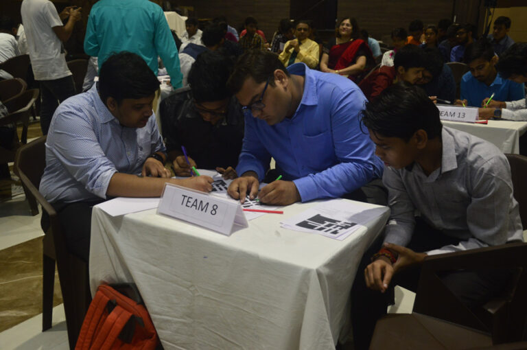 The Olympiad consists of 7 rounds and each round was conducted by the commerce department professors of the BESC College. Round 1 was the “crossword” round and it was conducted by Professor Mohit Singh. In this round each team was provided with the answer script and they were given 8 mins to complete the task. In this round Team 11 was placed first with 150 points followed by team 1 with 110 points then came team 4 which had earned 100 points.