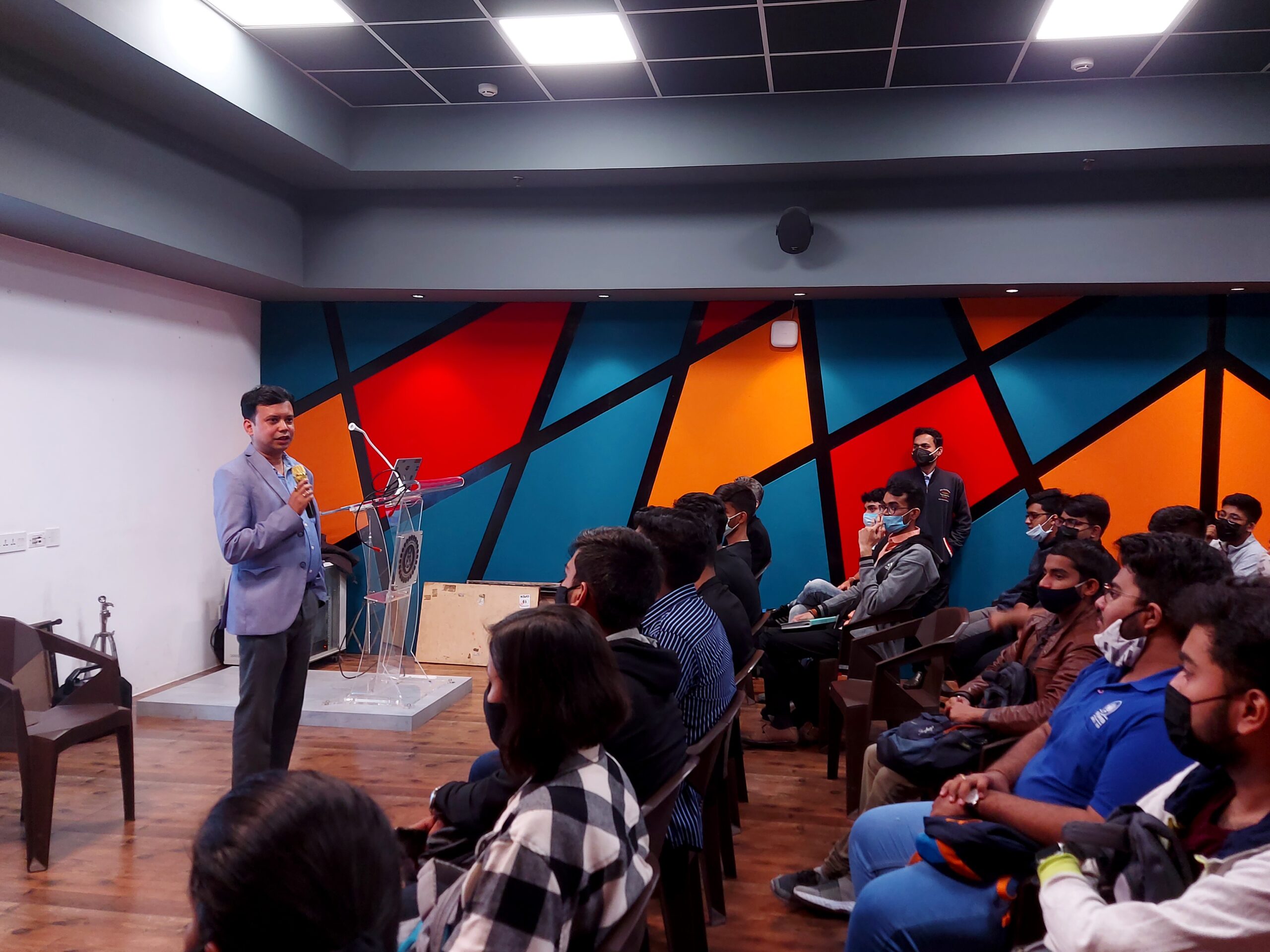 Eminent guests from Edelwisse (an Indian Financial services company ) , Mr Arghya Chakrabarty , Mr Vivek Gandhi and Mr Siddharth came and spoke on the position of the Indian stocks in today’s time and discussed with the students the three most important questions while dealing with the market , that are – which stock to invest in , when to buy and when to sell it and an insight discussion of analysis of stocks in Technical ( past ) , Fundamental ( present ) and Derivative ( future ) respect .