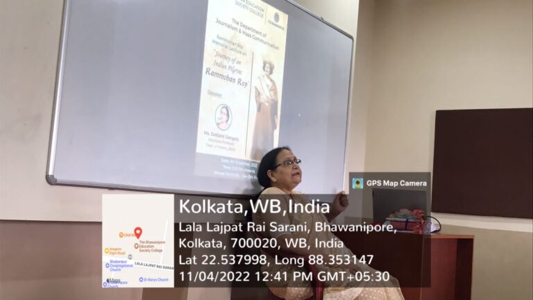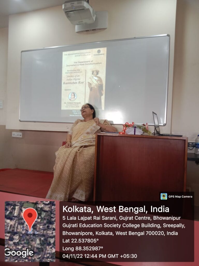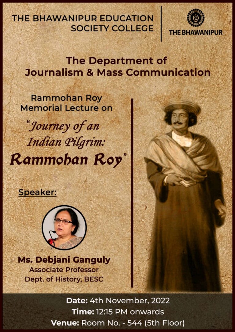 The Department of Journalism and Mass Communication of The Bhawanipur Education Society College conducted a special lecture titled “Journey of an Indian Pilgrim: Rammohan Roy” on 4th November 2022. The resource person was Prof. Debjani Ganguly, Associate Professor of the Department of History. The lecture was not only attended by the students but also by faculty members of different departments of the college.