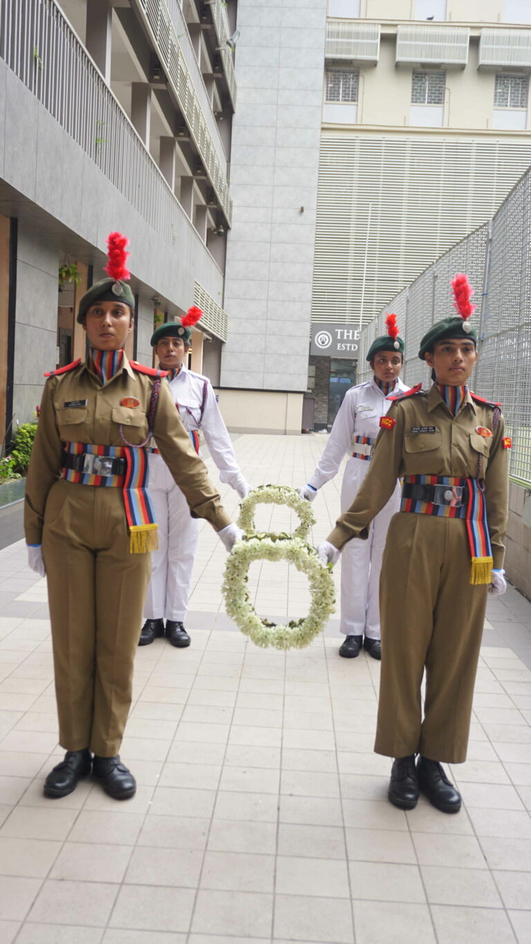 The NCC Collective at The Bhawanipur Education Society College organised a two-day event to honour these bravehearts. On the 26th of July 2023, the cadets paid tribute to the martyrs through a patriotic song and a self-composed poem, followed by laying a wreath-laying ceremony, led by our senior cadets and Dean Sir. This was followed by an inter-wing Debate competition. The Eagle Squadron, represented by the Air Wing cadets, and the Cheetah Squadron, represented by the Army Wing cadets were judged by the Dean of Student Affairs, Prof. Dilip Shah, and NCC officer Ms. Aritrica Dubey, who later chose the Best Speaker, followed by the 1st and 2nd runners up. The Debate was followed by an open quiz wherein questions were thrown to an open audience of NCC cadets. The events for the day concluded with the 1st, 2nd, and 3rd positions being awarded as per the number of questions answered correctly.