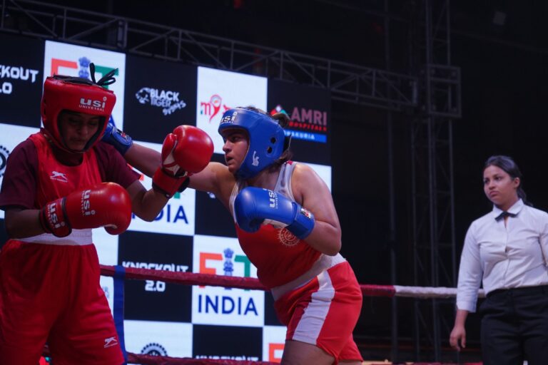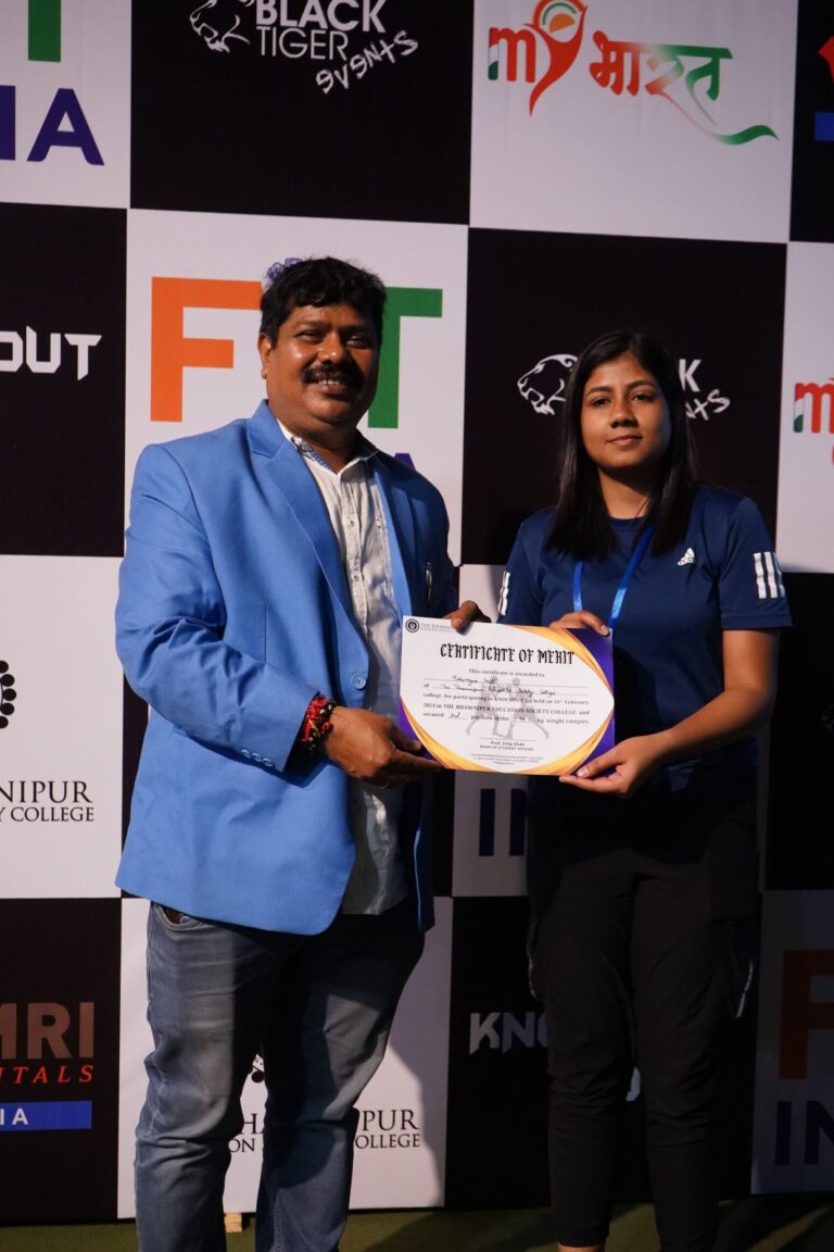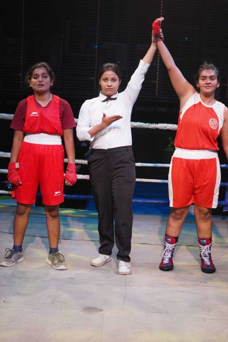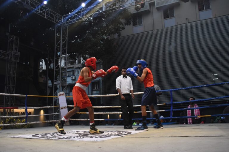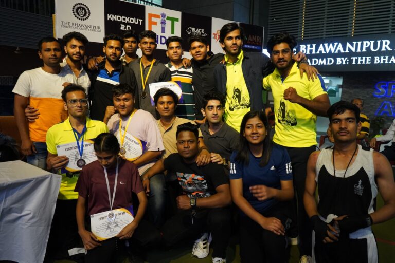 The Bhawanipur Education Society College, in collaboration with Rio De Janeiro, presented a groundbreaking event, Knockout 2.0, reviving the tradition of knockout tournaments in combat sports. The College Turf transformed into a vibrant boxing arena, witnessing the convergence of talent and determination from 24 participating colleges. Guided by the experienced leadership of Mr. Montu Das and Mr. Pradip Marik, President and General Secretary of the Chess Boxing Organisation of India, the event kicked off with felicitations to honor their significant contributions by Mr. Jitu Shah from the management. Also present were the sports officers of the College Mr. Rupesh Gandi & Bhavin Parmar. Mr. Ashutosh Jha, a 3-time international medalist and our college alumni, was also acknowledged for his impeccable contribution to the event’s planning. Participants were grouped by weight categories, and engaged in thrilling three-round matches, demonstrating their prowess and agility. Sponsored by AMRI Hospitals, the competition ensured the safety and well-being of participants with the presence of medical professionals. Special categories like “King of the College” and “Queen of the College” added an extra layer of excitement, culminating in Sumit Kr. Sharma and Khushi Lakra’s impressive victories. This event not only celebrated the history of boxing but also embraced modernity, showcasing the dynamic spirit of sportsmanship and competition.
