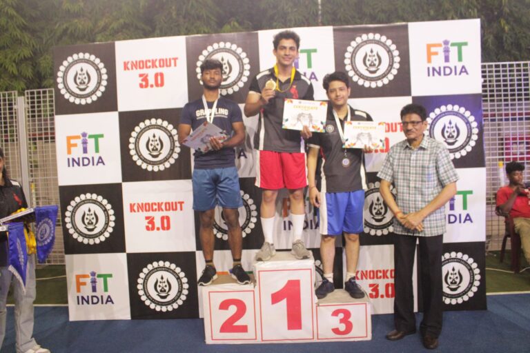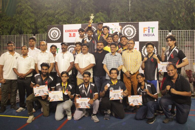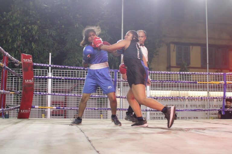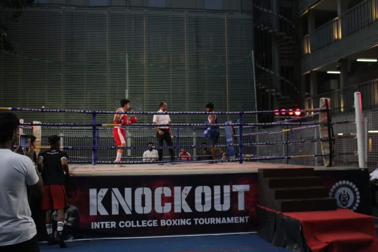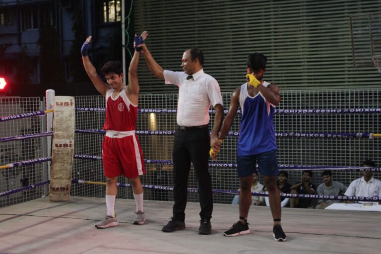 Boxing is one of the only combat sports to have found its roots in ancient times of almost all cultures known to mankind as a hand-to-hand combat sport, which involves extreme coordination of footwork and body movement to successfully launch powerful strikes with their arms that aim to harm the individual on the receiving end. So on the 25th and 26th of April 2025, The Bhawanipur Education Society College organised the third edition of Knockout, the college’s very own Inter-college boxing tournament that saw amazing participation from over 10 colleges and over 40 participants, including both male and female fighters. The event focused on providing a platform for experienced as well as new boxers to interact with each other and gain more exposure about the sport by exchanging blows. The event commenced on the 25th at 4:00 P.M. under the guidance of Coach Mr. Ashutosh Kumar Jha. With a short introductory speech from the coach, the Centre Juror, Mr. Montu Das, was introduced along with the referees for the event, which also included a world champion, Mr. Kingshuk Saha. The mic was then handed over to the judge, who motivated and boosted the spirit of the participants, encouraging more students to join the sport as it was not just about competition but also for general fitness. After the brief introductions; the Rector and Dean of Student Affairs, Prof. Dilip Shah joined Prof. Minakshi Chaturvedi and Coach Ashutosh Kumar Jha to inaugurate the ring, which was followed by a short inaugural boxing match between Dean, Prof. Shah and the Center Juror, Mr. Montu Das.