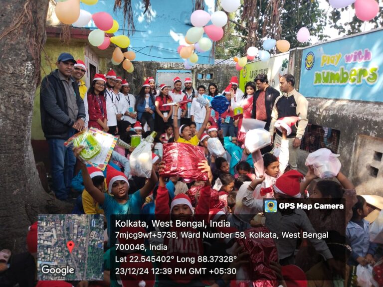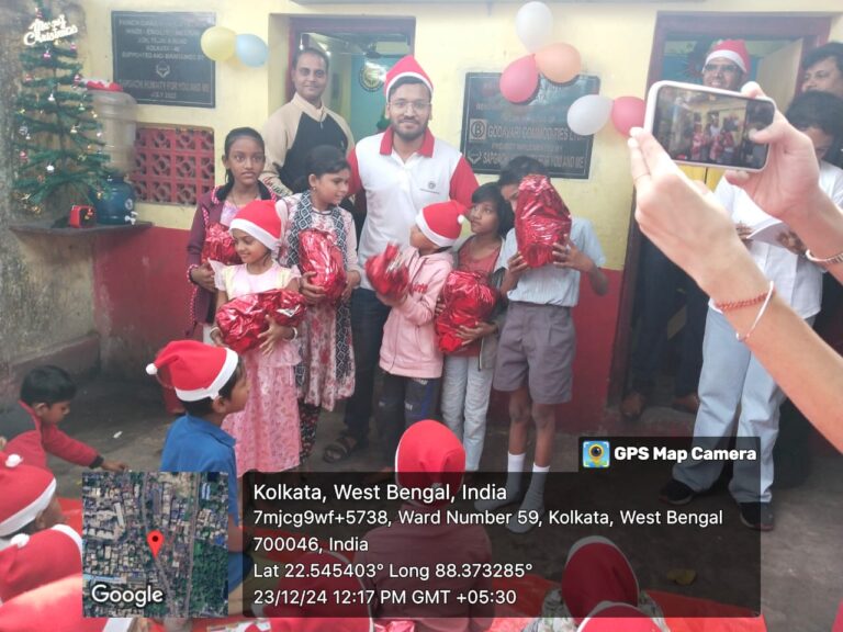 Brief description of the event: On 23.12.2024, the NSS Unit of The Bhawanipur Education Society College organized its annual “Magic Box – Pre-Christmas Celebration” at Panch Darshiya School, a community centre located at the Park Circus Slum. This joyous event aimed to spread festive cheer among the underprivileged children of the community. The celebration commenced with a quiz and riddle game, which witnessed enthusiastic participation from the kids. The excitement was palpable as the kids showcased their knowledge and problem-solving skills. As a token of appreciation and festive spirit. Volunteers distributed stationeries, snacks, chocolates, water bottles, tiffin boxes, and Christmas caps among the children.