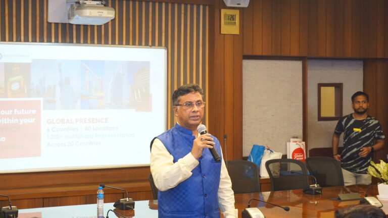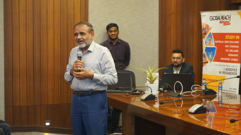 The speaker, Mr. Ratan Kumar Mukherjee, General Manager, Operations from Global Reach having 32 years of association, laid emphasis on Business Schools situated outside India. Multiple colleges situated across the world were discussed, and they explained to the students how the process of immigration, accommodation, and student loan is, lastly their session was summed up with a round of quizzes with the students engaging them to think of Higher Education abroad.
