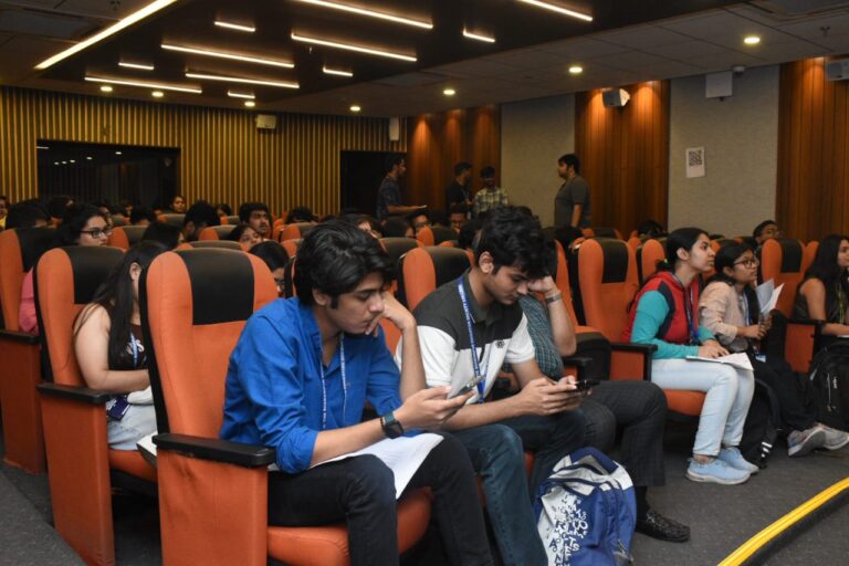 Next up was a fun timed test with 11 questions, each different from the other, to be solved by students under 30 seconds. The Society Hall buzzed with hushed, excited talk as attendees scrambled to solve the questions while he sailed through them. Seemingly bamboozling at first glance, the problems turned out to be simple as he started discussing the answers and logic behind each one of them.