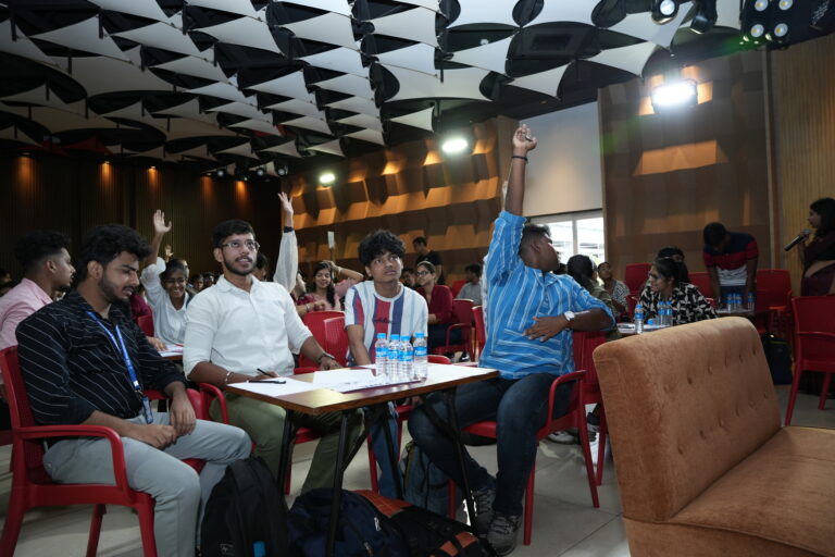 The competition consisted of a total of 32 teams including a faculty team. The first round was based on predicting the ‘perfect bid’, which seemed like a strategic and risk-taking game where the teams had to pick one member from their team who was confident and knowledgeable at the same time. It was remarkable to hear some teams bid for the highest marks and were appreciated by the audience. Mr.Vivek Patwari from the faculty team gave the fastest answers and amazed his students.