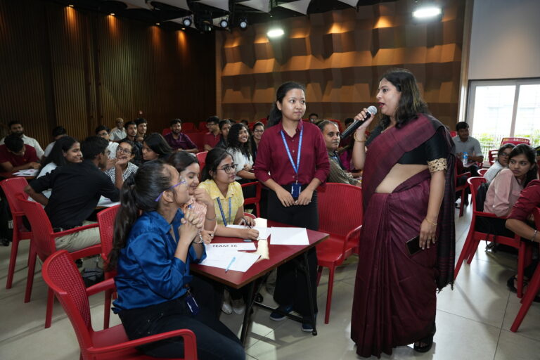 Soon after, Prof. Dilip Shah, Dean of Student Affairs described the event as “igniting the minds” of the students. The students witnessed their faculty, Mr. Dushyant, sharing some useful tricks and tips for competitive exams, which would be beneficial for the students. He even taught the students the art of “‘Digital Sum”. Finally, having Prof. Minakshi Chaturvedi ask general knowledge questions proved to be a refreshing break from the mathematics-only rounds as it tested the students’ general knowledge and awareness.