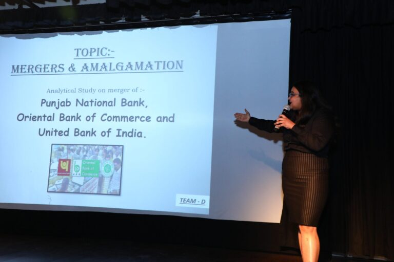 The Convenor of the event, Prof. Mohit Shaw explained the rules of the event. Each team was allotted 8 minutes for presentation on the topic and 1 minute for answering cross questions addressed to the team. The teams had to make a presentation on the companies chosen doing a detailed analysis and research of the merger/acquisition, on background of company and the synergy created.