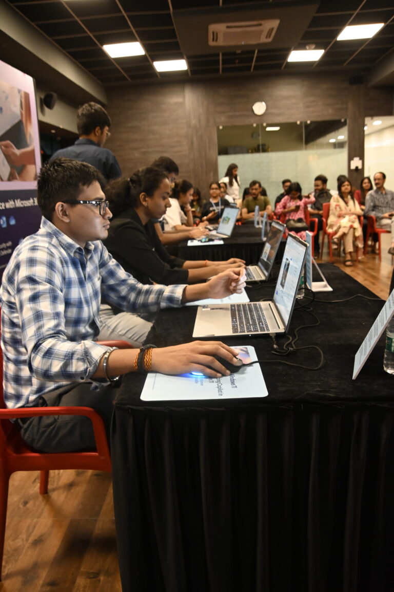On Day 1, the event witnessed a strong student response which was heartwarming, with many of them lining up to attend the workshop eagerly. The first batch went in at 12:45 P.M. with nearly 15 attendees and each session spanned around 10 minutes. As they sat down in the hall, the Microsoft team volunteers helped them understand the functions of Copilot and engaged them on individual laptops. It was uplifting to see the varied imaginations of the attendees, who generated and edited images that ranged from aliens to cricket. The candidate with the most creative image was awarded a Microsoft goody bag which contained an insulated bottle and a mouse pad. In total, the day saw approximately 120 attendees taught in 8 batches of 15 each; which led the event to end at 3:30 P.M. On Day 2, the crowd response was lower compared to Day 1, hence, the event started at 11:15 A.M. with 5 participants out of which were teachers from the Morning Commerce department. It was encouraging to witness the older generation embracing and adapting to new technology, the participants imagined everything from Nagaland dragons to the Seven Wonders on a world map. 4 goody bags were awarded to the best images. The event ended at noon.