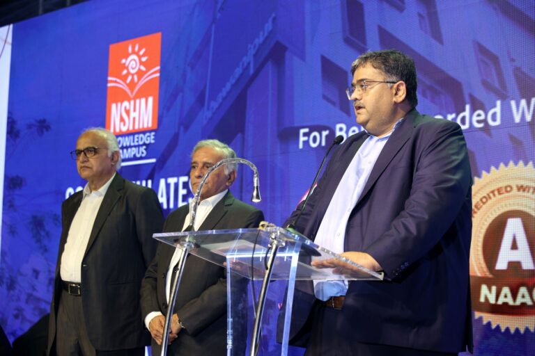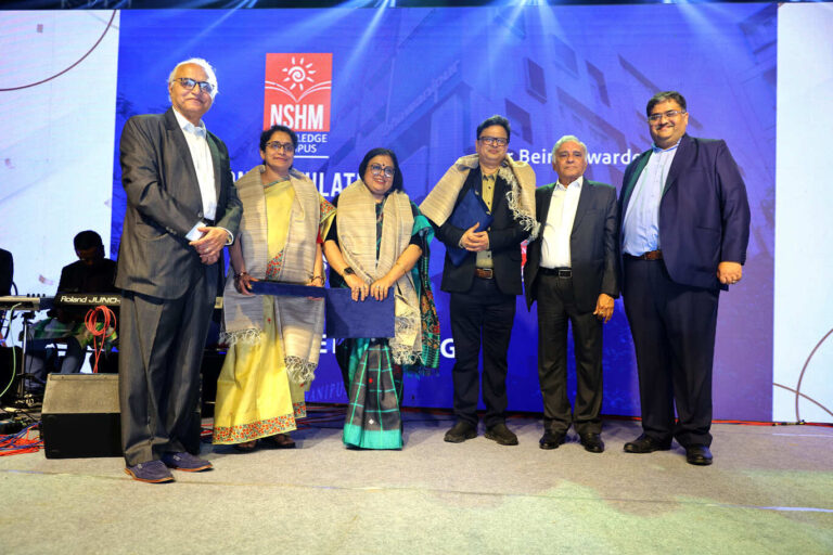 At 7:45 pm, the felicitation ceremony commenced, with Mr. Cecil Anthony, the promoter of NSHM Kolkata Campus, extending a warm welcome. The Chairman of BESC, Mr. Rajnikant Dani, along with Vice Chairman Mr. Miraj D. Shah and Mr. Pradip Sheth, announced the names of key contributors to the NAAC process and felicitated them on stage. The top management also joined in singing to enhance the celebratory spirit. The Vice-Chancellor offered congratulations and appreciation for everyone’s contribution to the NAAC process.