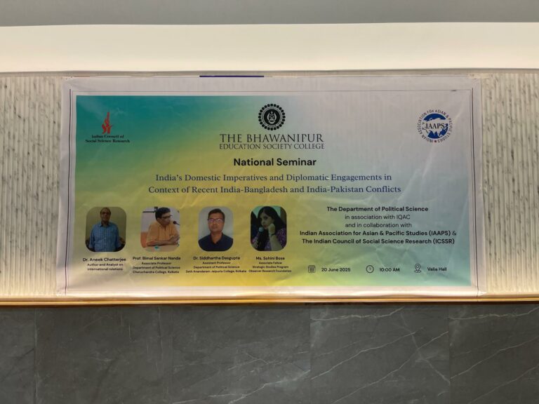 Objective of the event: The objective of this seminar is to critically examine the interplay between India’s internal socio-political and economic imperatives and its external diplomatic strategies, particularly in light of recent developments in its relations with Bangladesh and Pakistan. The seminar aims to: Analyze how domestic priorities—such as national security, economic growth, internal political dynamics, and regional stability—influence India’s foreign policy decisions.Explore recent points of conflict and cooperation in India-Bangladesh and India-Pakistan relations, identifying underlying causes and potential long-term implications. Assess the effectiveness of India’s diplomatic engagements in addressing bilateral tension while promoting regional peace and cooperation. Facilitate informed dialogue among scholars and academicians to contribute towards a more coherent and responsive foreign policy framework that aligns with India’s domestic needs and regional aspiration