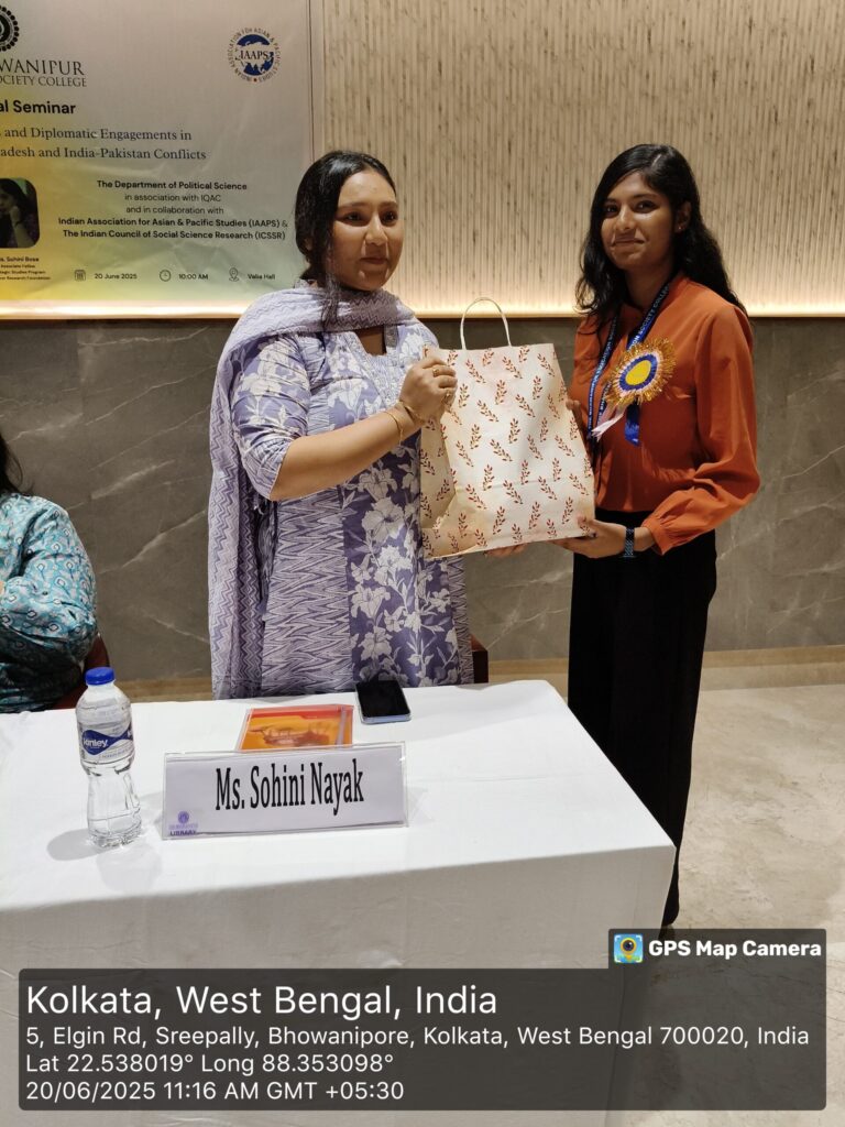 Outcome of the event: The seminar provided valuable insights into India’s regional diplomacy, with special focus on the recent challenges and emerging opportunities in South Asia. It provided a comprehensive platform for students, scholars, and faculty members to critically examine India’s evolving foreign policy priorities in the context of its immediate neighbors. The seminar has successfully achieved the following outcomes: a. Enhanced Understanding of Regional Diplomacy: Participants have gained deeper insights into the historical and contemporary issues influencing India’s foreign relations with Bangladesh and Pakistan, including border management, trade dynamics, water sharing, migration, and security concerns; b. Academic Enrichment: The seminar has served as an academic stimulus encouraging students to engage in analytical thinking and apply theoretical frameworks to real-world geopolitical scenarios; c. Integration with Curriculum: As a part of their academic evaluation, students of Semester 4 will be required to write a comprehensive report on the seminar. This will serve as an assignment under the Calcutta University Semester 4 Tutorial Examination, thereby integrating the seminar’s content with their formal curriculum.