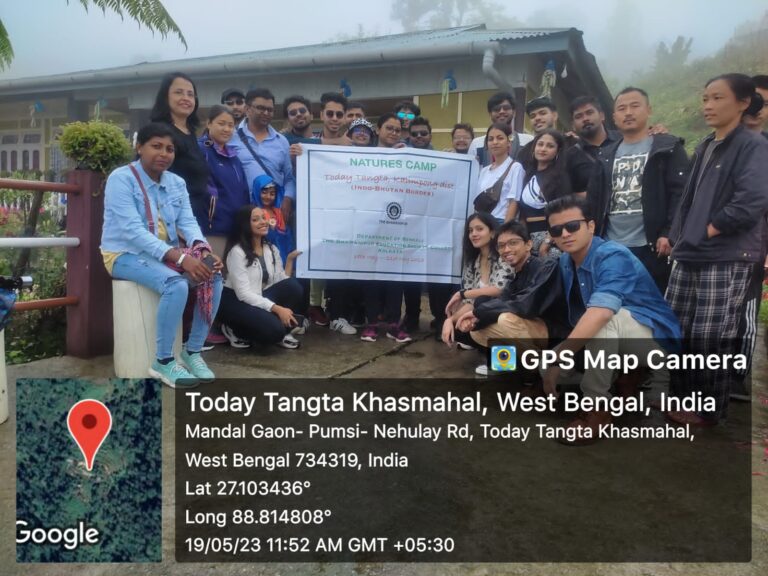 The Department of Bengali, Bhawanipur Education Society College, Kolkata, organised a Nature’s Camp from the 17th to 22nd of May, 2023. The trip entailed a participation of 21 students and 3 professors. The camp was based in the Todey-Tangta region, a remote area right on the Indo-Bhutan border. Being amidst nature, students got the opportunity to break away from the hectic city hustle and instead focus on self reliance and acting in accordance to nature for the landscape comprised of mountains with rich vegetation, cold and rainy weather and most importantly, lack of Internet connectivity. This ensured that students honed their skills of teamwork and coordination while undertaking in adventurous trekking through the flora and fauna of the beautiful place. Students were also exposed to the Buddhist-Bhutanese culture of the region, getting to know about the history of the 2 mountain villages through hikes (to Tangta Buddhist monastery) and camp fire interactions with the locals. Every student experienced a change in mindset, an encouraging increase in self confidence and most importantly were witness to an eye opening scenario of how the world really is, outside the comfort of their homes. Our professors played a significant part in guiding the students, further facilitating the paramount objective of the camp: raising responsible and mature individuals who can walk through life, refusing to be trapped by the various toxic elements around them. The Nature’s camp is organised and sponsored every year by the college. As students, this sponsorship is highly appreciated and we are indebted to the college management for providing us such wonderful opportunities. Suffice it to say, such trips are essential for a student’s growth and development, bringing them closer to nature.