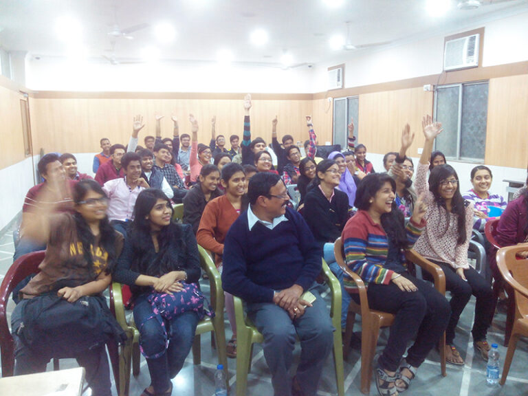 An introduction to NSS was given by SL sir. Then Mr. P.K. Patnaik- youth officer and head,NSS regional centre (WB/Sikkim) told the students that the NSS started in 1969 with 40000 people. The students were told the values and rules on which NSS works. Mr. Patnaik quoted the words of Swami Vivekananda “Personality Development is possible through community service “. The fun part was that the students were taught the NSS special clap. Mr. Patnaik told us that NSS runs on the three Ds – Discipline, Decorum, and Decency. The causes to which NSS serves are – environment, health, education, disaster, rural development.  Prof. Dilip Shah told students the benefit of working as a NSS volunteer and how students can enhance their skills.