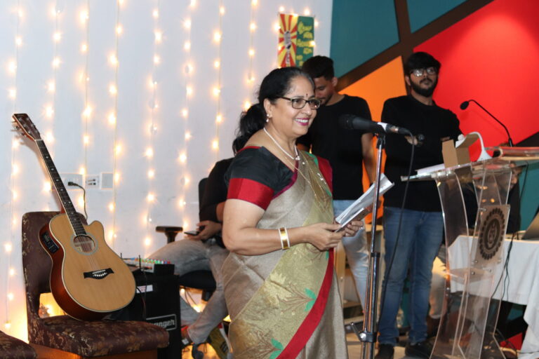 Shortly thereafter, Prof. Dilip Shah, the Dean of Student Affairs extended his heartfelt greetings and wishes in the form of a warm speech. The event was also graced by the presence of Prof. Meenakshi Chaturvedi and Prof. Vasundhara Mishra performing. The stunning ambience along with such beautiful writeups by the writers of tomorrow were no less to make the day worth remembering.