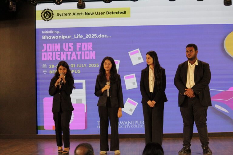 Towards the end of each slot, one of the Collectives—Flames, Enact, Crescendo, or Fashionista—took the stage and dazzled the audience with stellar performances. The students were then escorted by volunteers on a guided college tour, College Brahman, where they were introduced to the major areas of the college, such as the Library, Sports Arena, and Canteen. A selfie zone was also arranged, where the excited newcomers could capture their first memories of college life. By 7:00 P.M. on 31st July 2025, the BESC Orientation successfully concluded, with the new BE-ites completing their very first step of the Bhawanipur journey! Reporter– Saptak Roy Choudhury And Koena Chatterjee Photographer– Agrag Ghosh, Sanika Shaw, Spandan Samanta, Gaurav Chowdhury, Himanshu Jain, Pratick Gupta, Hrishab Poddar, Aman Pal