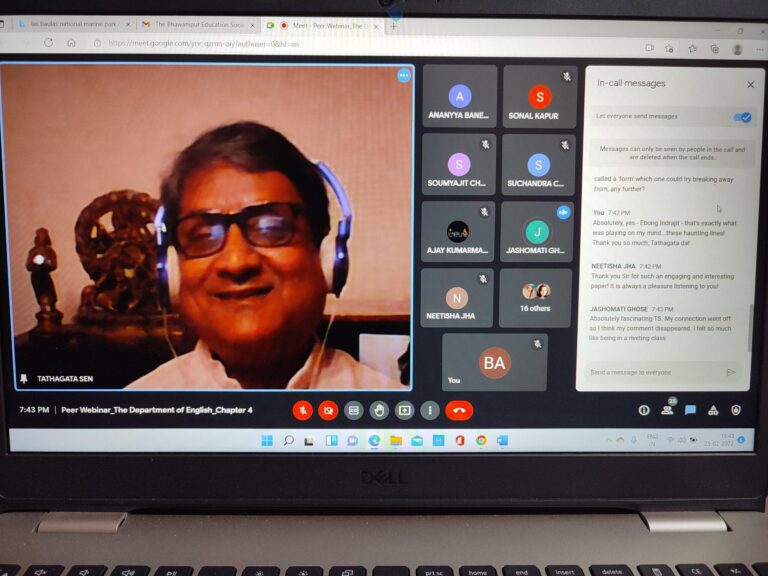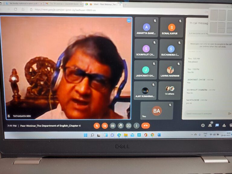 The fourth chapter of the departmental Peer Webinar was organized by the Department of English, The Bhawanipur Education Society College on 25.02.2022 from 7.00 p.m. In this session, Prof. Tathagata Sen, Associate Professor, Department of English, delivered a presentation entitled “Farewell to Form: Visual Arts and the Theatre”. Prof Sen started by introducing the topic as a result of his observations with reference to the contemporary world. He said that the turn of the events from the global pandemic to the present global military crisis remind him of the darkness and the anarchy manifested in the art movements of the 20th century. He referred to W.B Yeats’ famous line, “Things fall apart center cannot hold” and shared his thoughts with the audience. Referring to Rabindranath Tagore, Prof. Sen said that Tagore had shuddered to see the crumbling ruins of a proud civilization and called it the greatest disillusionment. He returned to the apocalyptic vision of collapses which pervaded the world through the 20th century and reflected how there is a recurring picture of a disintegrating world which can be found in arts and literature throughout the last century. There was a constant endeavour throughout this period to redefine the purpose and meaning of life and the artists expressed their despair in two brief but important art movements of the West – Dadaism and Surrealism.