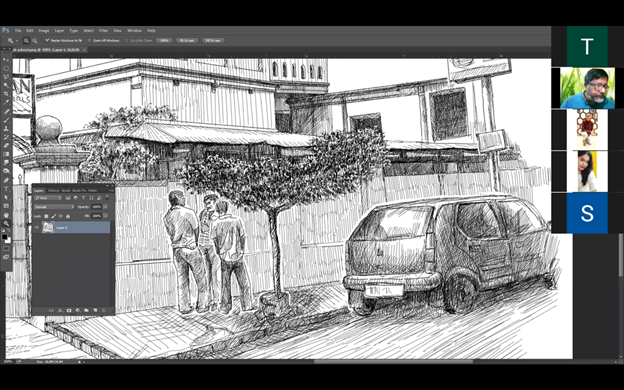 PEN PENCIL CHARCOAL was a hands-on workshop on exploring the various forms of sketching organised by the ‘Art In Me’ Collective of the Bhawanipur College, conducted on zoom meetings from 03:00 pm to 05:00 pm. It was a two-day event; more than 100 students attended the workshop. The speaker, Mr. Biswanath Dasgupta, an eminent painter, printmaker and educator was the chief speaker of the event.