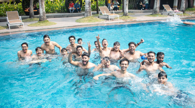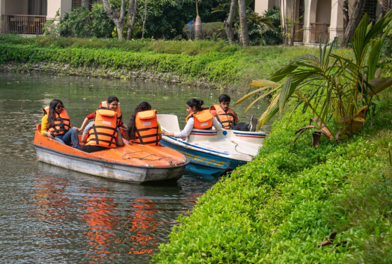 The buses departed from the college campus at 8:00am and by 9:30am we reached the venue. On reaching, everyone was welcomed by a delicious breakfast provided by the resort. A number of sports activities were played such as basketball, football and cricket by all the students. To beat the heat some of the students even decided to swim while the rest of them enjoyed boating in the lake. The students were excited and shook their legs to the thumping dance numbers played in the disco near the pool, the teachers also joined them.