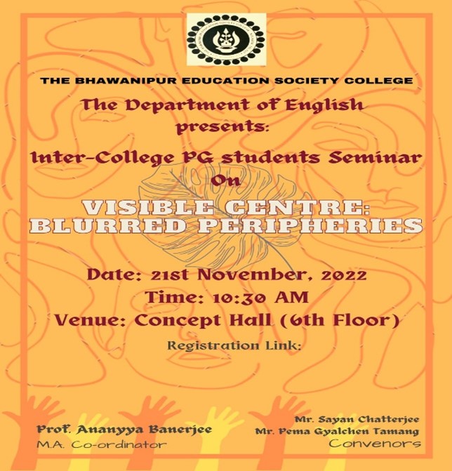 The Department of English, The Bhawanipur Education Society College, organized an inter-college Students’ Seminar for the postgraduate students, on 21st November 2022 (Monday), in the sixth-floor auditorium, from 10:30 a.m. to 4 p.m.