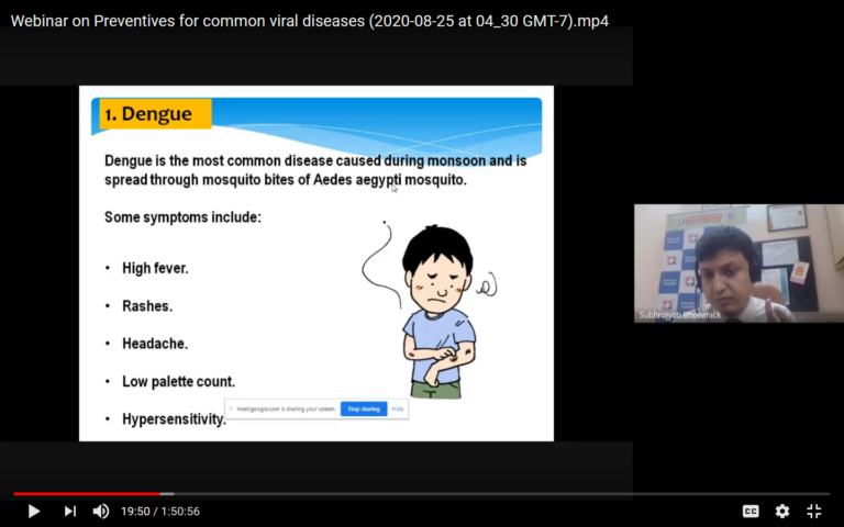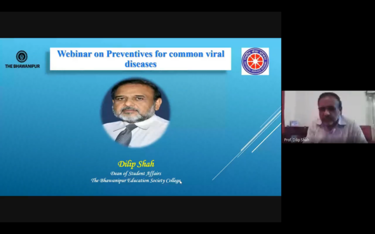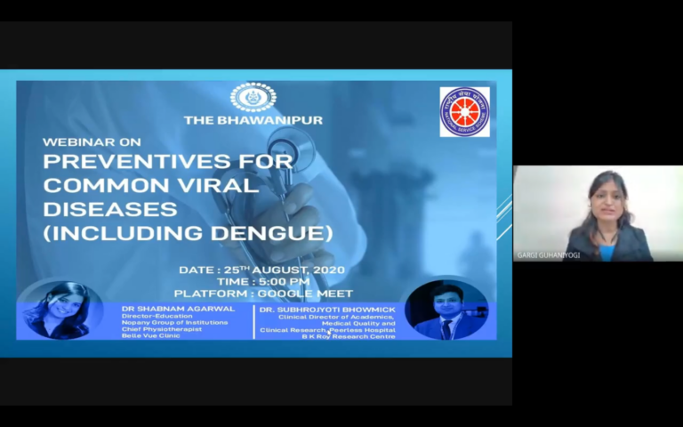 Name of the event: Preventives for Common Viral Diseases (Including Dengue) Date: 25th August 2020 Time:  5 pm- 7 pm Organized by: NSS Collective Platform: Google Meet Video Conferencing No. of Students: 50 Student Coordinator: Rohit Walia Reporter: Nidhi Singh Resource Persons Faculty Present: Prof. Dilip Shah, Prof. Minakshi Chaturvedi, Dr Vasundhara Mishra, Dr. Rekha Nariwal, Ms. Gargi Guha Niyogi. The webinar commenced sharp at 5pm with Ms. Gargi Guha Niyogi welcoming the students, the faculty members, and the speakers. Firstly, Prof. Dilip Shah, Dean of student Affairs of the college, addressed the attendees and explained that the purpose of the webinar was to enlighten the audience about the various harmful viruses that exist in the environment and the prevention strategies that should be used to keep ourselves safe. He expressed his gratitude to the speakers for taking time out from their busy schedules and commended the efforts of the students and faculty members that organised the webinar. Next, Dr. Subhrojyoti Bhowmick shared a PowerPoint Presentation and explained how Covid-19 isn’t the only virus we should be wary of at present. He talked about various viral diseases like Dengue, Chikununiya, Viral Fever, Influenza and Hepatitis-A caused by the common viruses present in our surroundings and what steps to take in order to prevent ourselves from the aforementioned diseases. He concluded his presentation by introducing the attendees with the concept of ‘Telemedicine’ where we can get direct consultations from doctors at our home using our Mobile Phones. Watch the webinar Following this, Dr. Shabnam Agarwal shared an informative Presentation on the various ways the Corona Virus is affecting our lifestyle, our physical health as well as our mental health. She talked about the precautionary measures that can help tackle various physical discomforts and mental stress caused due to the Global Pandemic. Lastly, the speakers enthusiastically answered all questions presented by the audience. The webinar was concluded with a vote of thanks from Prof. Minakshi Chaturvedi to the speakers and the audience.