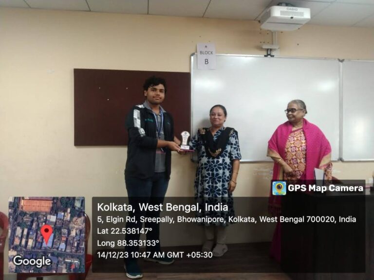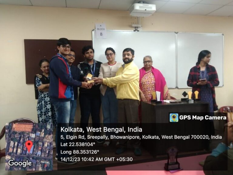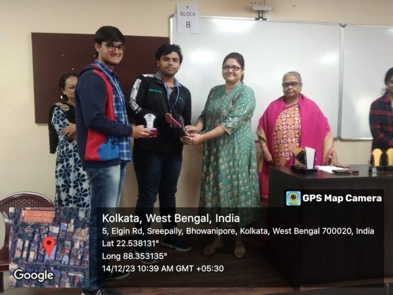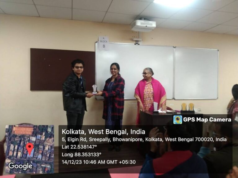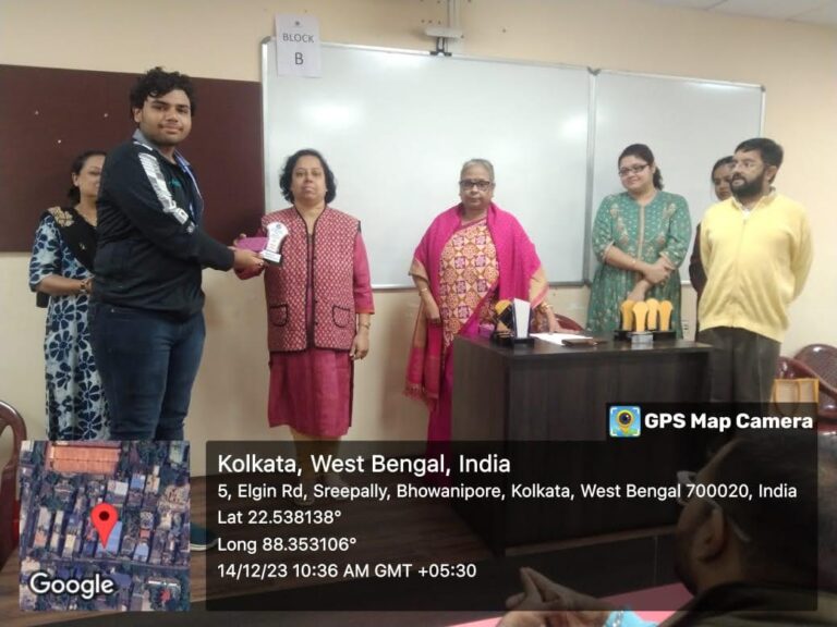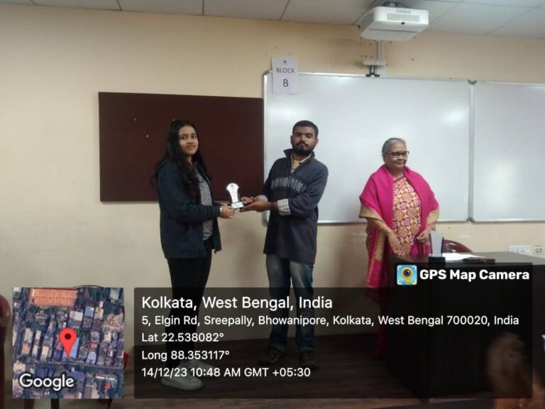 d. The Best Paper Presentation in Students’ Seminar was jointly won by Group A (represented by Manu Kumar Gupta, Prince Mishra and Ritwika Dutta) and Group F (represented by Sanam Iqbal, Najma Parveen, Madhupriya Sengupta and Ankita Mondal);