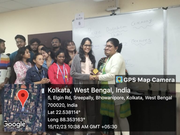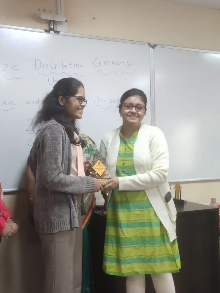 g. the best group (students are divided into six groups), which is a prize decided on the basis of various parameters which include the Percentage of Attendance in Continuous Internal Assessments, Continuous Internal Evaluations, Mentoring, Doubt-Clearing sessions, Student’s Seminar and Assignment Submissions. This prize was won by Group A led by the Group Representative, Mahimaa Bhura