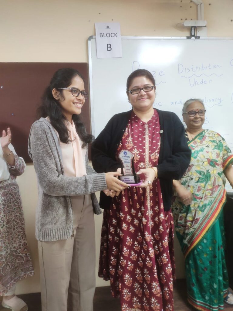 d. the best paper presentation in students’ Seminar was won by Group F (represented by Akshaya Venkateswaran, Garima Pradhan)