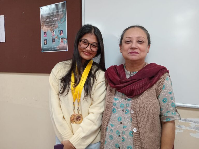 Name of the Activity: Prize Distribution Ceremony for Semester V Major Type of Activity: Academic Date/ Duration of Activity (from-to): 22.12.2025 Time: 12 noon Details of Resource persons (Name, Designation, Affiliation, Area of Specialisation, etc): Not Applicable No. of Participants: 77 Objective of the event: All round development of the personality of the students which includes apart from academic excellence, the spirit of punctuality, discipline, leadership and teamwork Brief description of the event: The Department of Political Science organized a Prize Distribution Ceremony on December 22, 2025 at Room 530 for the students of Semester V Political Science Major, to recognise their achievements in all types of academic and disciplinary activities during the semester. This ceremony is based upon the various Academic and Disciplinary measures introduced by the Department for the overall development of the students, not only in academics but in various other fields.