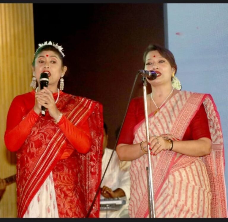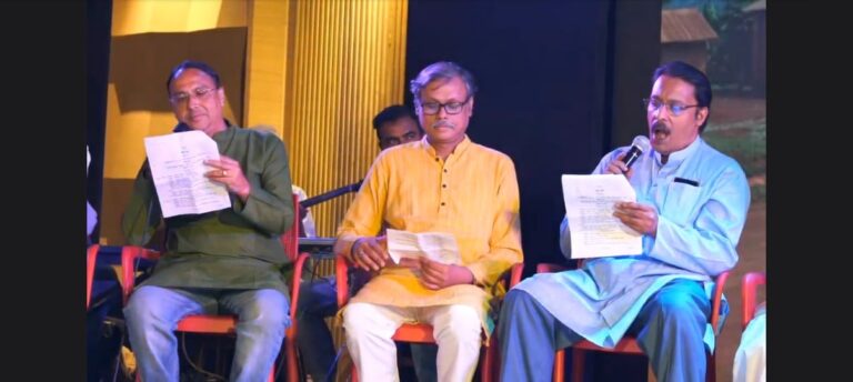 The recitation of Tagore’s masterpiece, ‘Neerjhorer Shopno Bhongo,’ followed, with faculty members Gargi, Ria Saha, and Nirjhar Ghosh breathing life into the profound verses, evoking a range of emotions. The students (Abhirup, Priyangshu, Suchetan, Abhilash & Satabisha) once again took the stage with a medley song, their voices harmonizing to create an almost disarming musical experience.